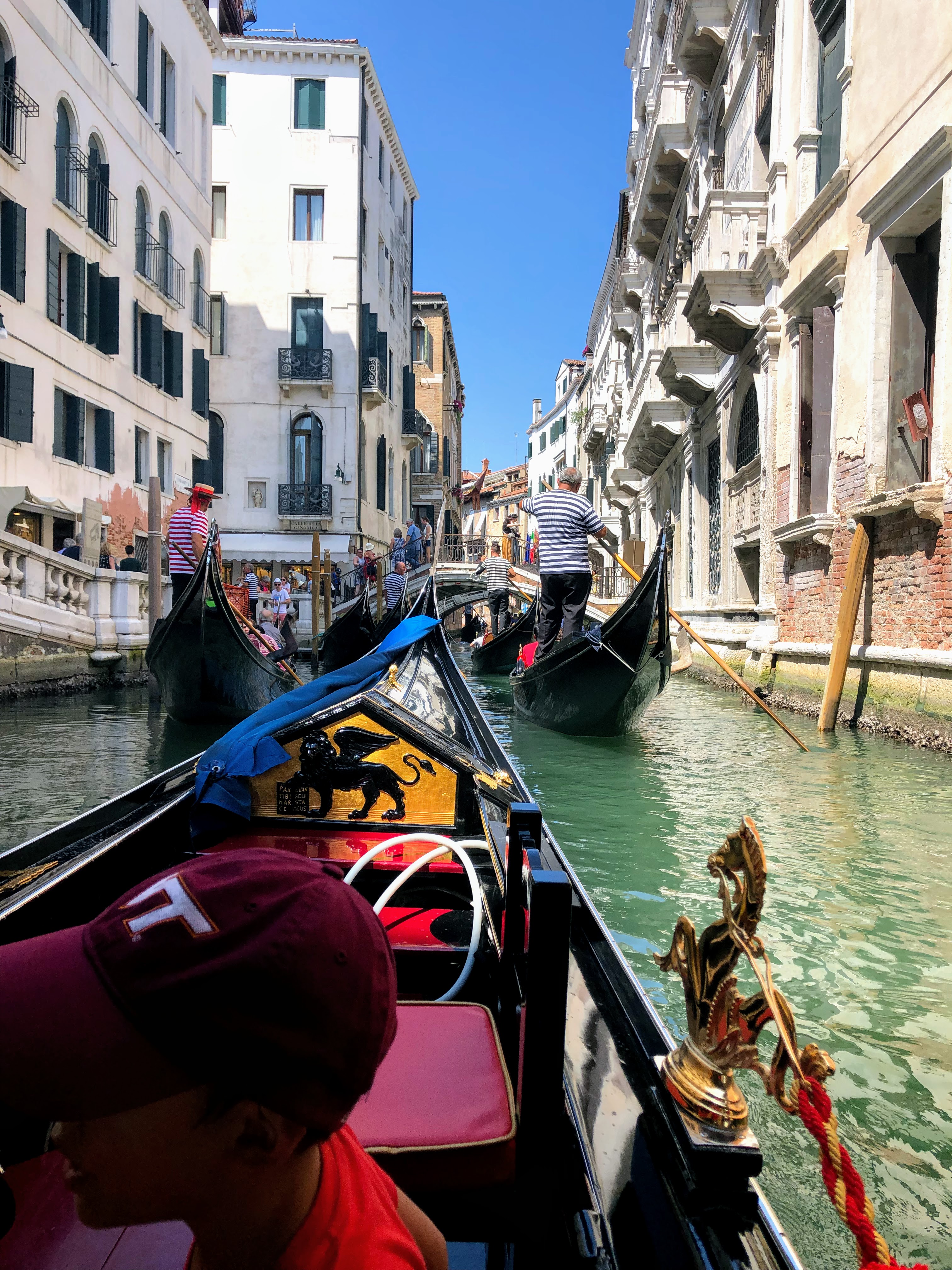 My cousin decided to treat the family to a gondola ride, especially since it was my son’s birthday and it was on his bucket list when he read books about famous things in Italy. Our gondola captain (?) was very friendly and pointed out a few landmarks as he took us from the Grand Canal into the narrow canals of Venice. It was quite amazing to see these buildings literally in water, often times doorways just leading out to a canal versus a walkway. It definitely is an interesting perspective, and thankfully we didn’t get lost going back to the Grand Canal. The only downside to gondola rides (which you might have guessed) is that they are SUPER expensive. But if you have the money, it’s definitely worth the price just to have a leisurely ride through the city.