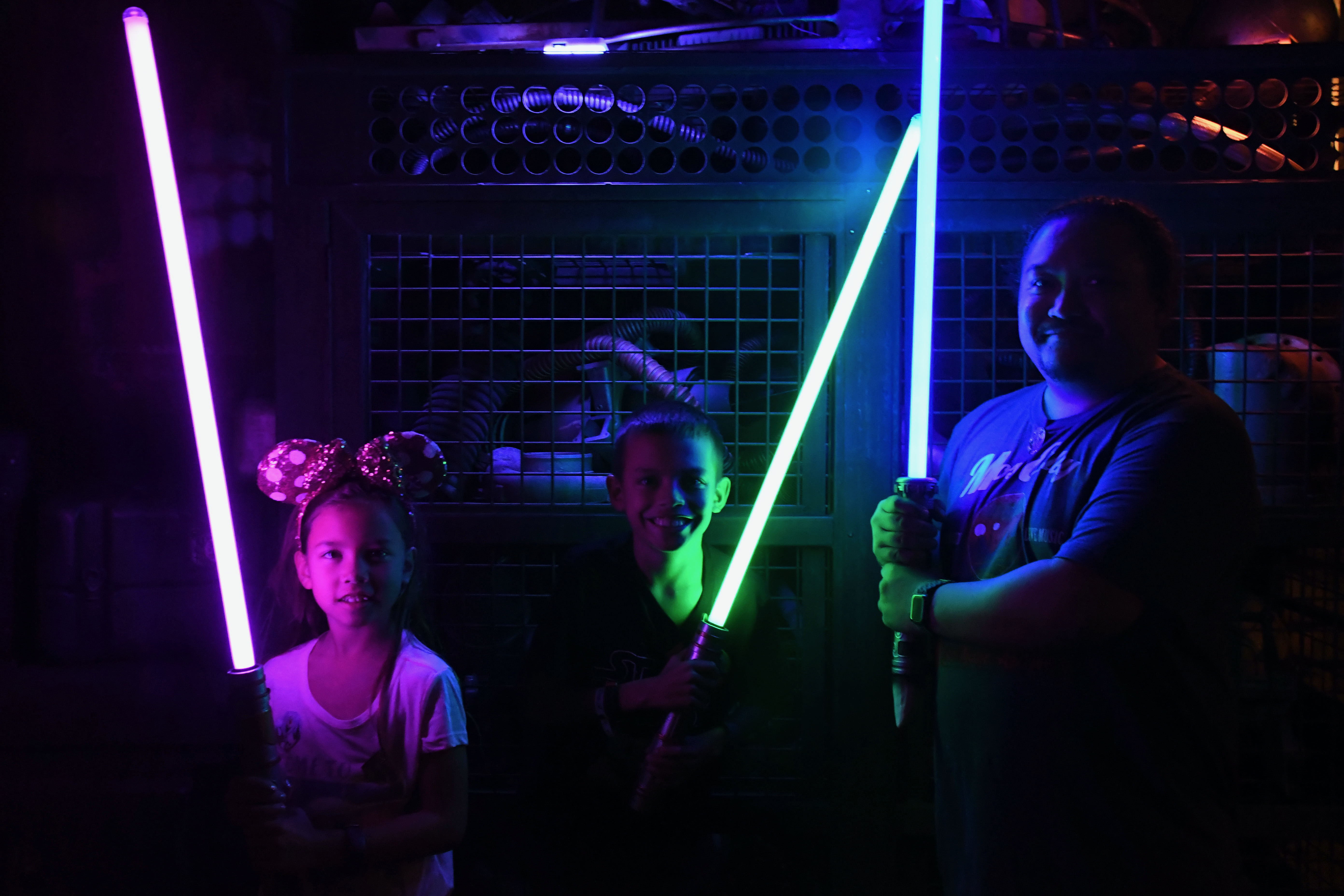 My kids actually really enjoy their droids. The droids also interact with each other, so the cast members tell you to turn them off at night otherwise you’ll get creepy droids talking to each other. Top Tip: Don’t buy the personality chip right away when you pay for the droid experience. Build your droid first. When you’re done, you can go to the personality chip wall where a cast member will happily let you hear what each personality sounds like. My daughter, of course, got the friendly one and my son got the one with the R2-D2 scream. They are both quite happy with their choices.