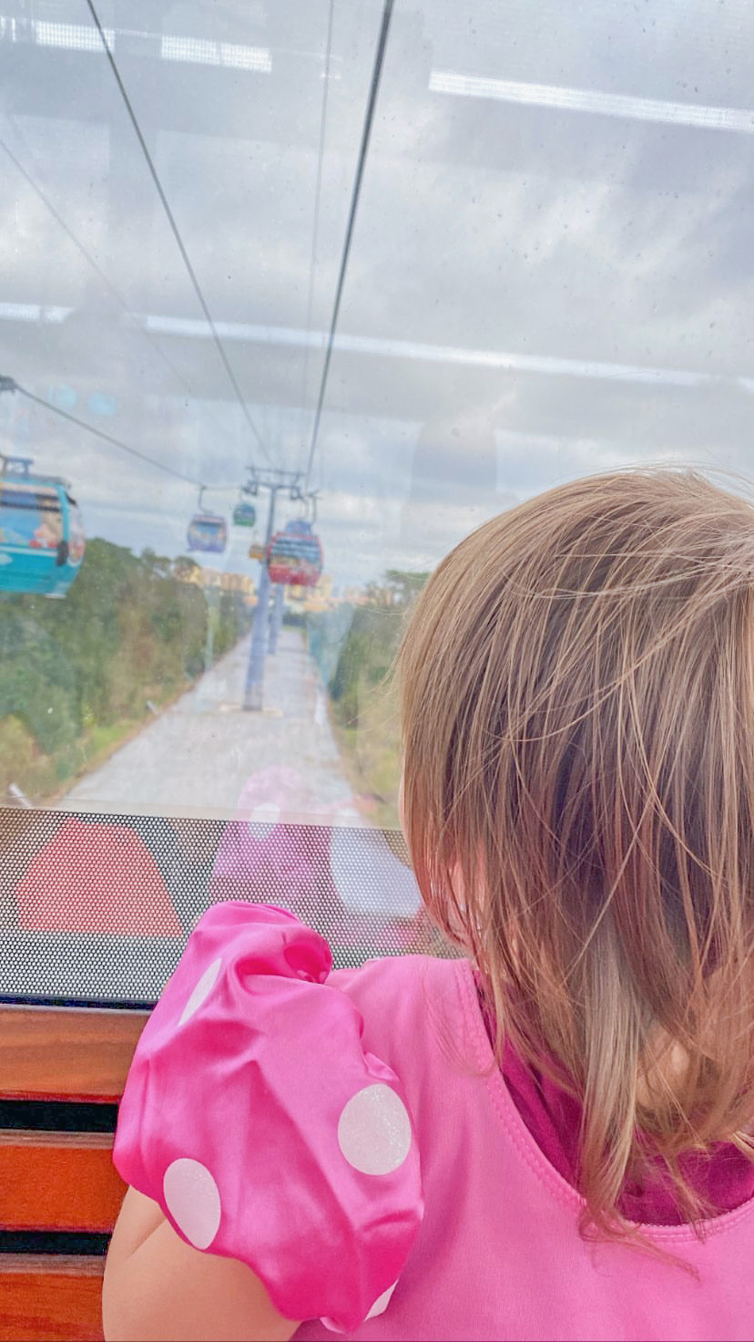 Luckily the buses drop you off right by the Skyliner for Caribbean Resort. The kids loved being high in the sky and watching the other decorated gondolas. They kept screaming about seeing different Disney characters and wanting to ride the ones with their favorites.