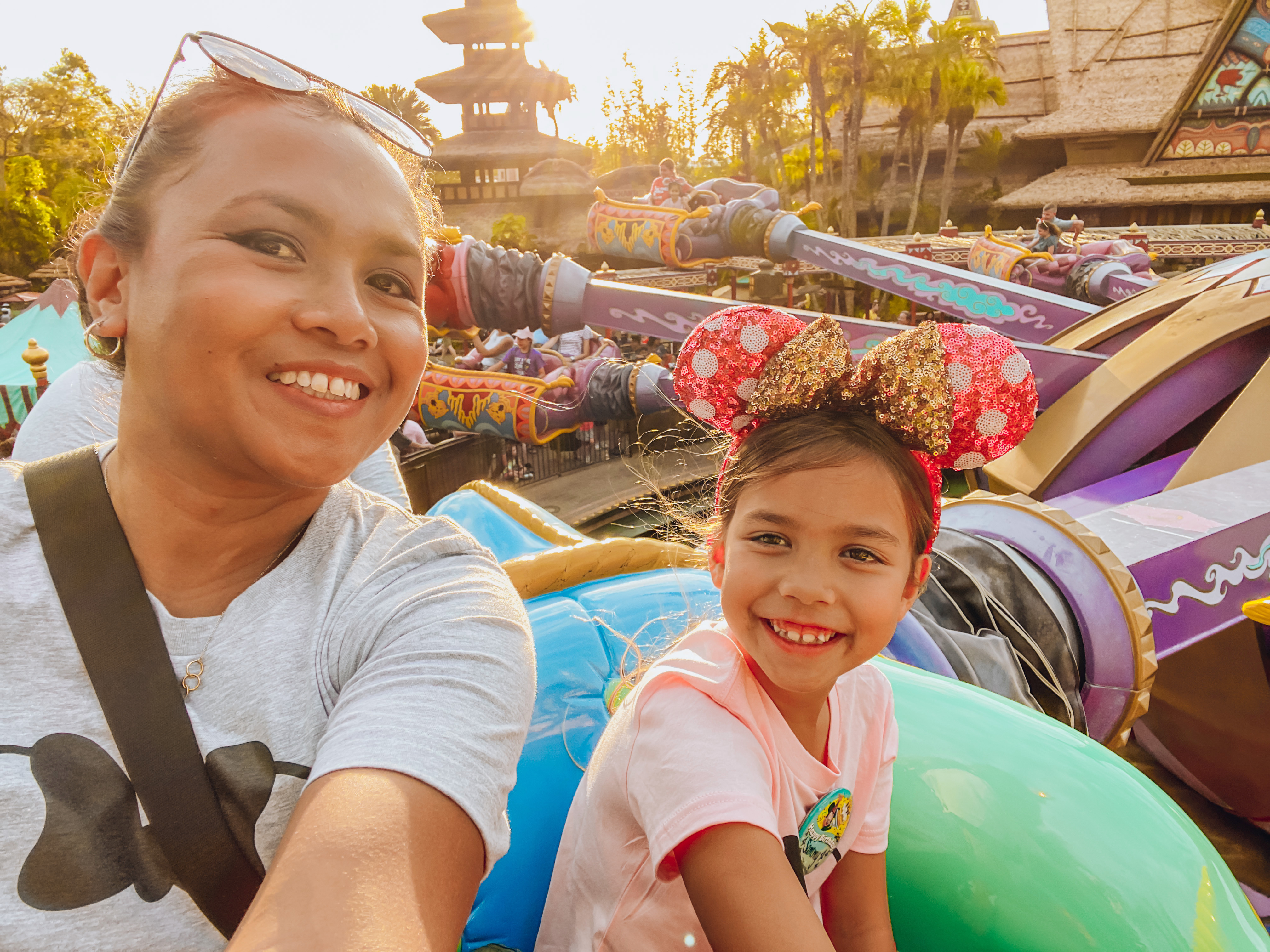 First up, tea cups! My oldest daughter was bugging us to ride the tea cups, but my son absolutely hates spinning rides like tea cups. Since he wasn’t here, and it was a ride for all ages the whole family waited in line. Both girls absolutely loved it, and it was very heartwarming seeing them work together to spin the cup.