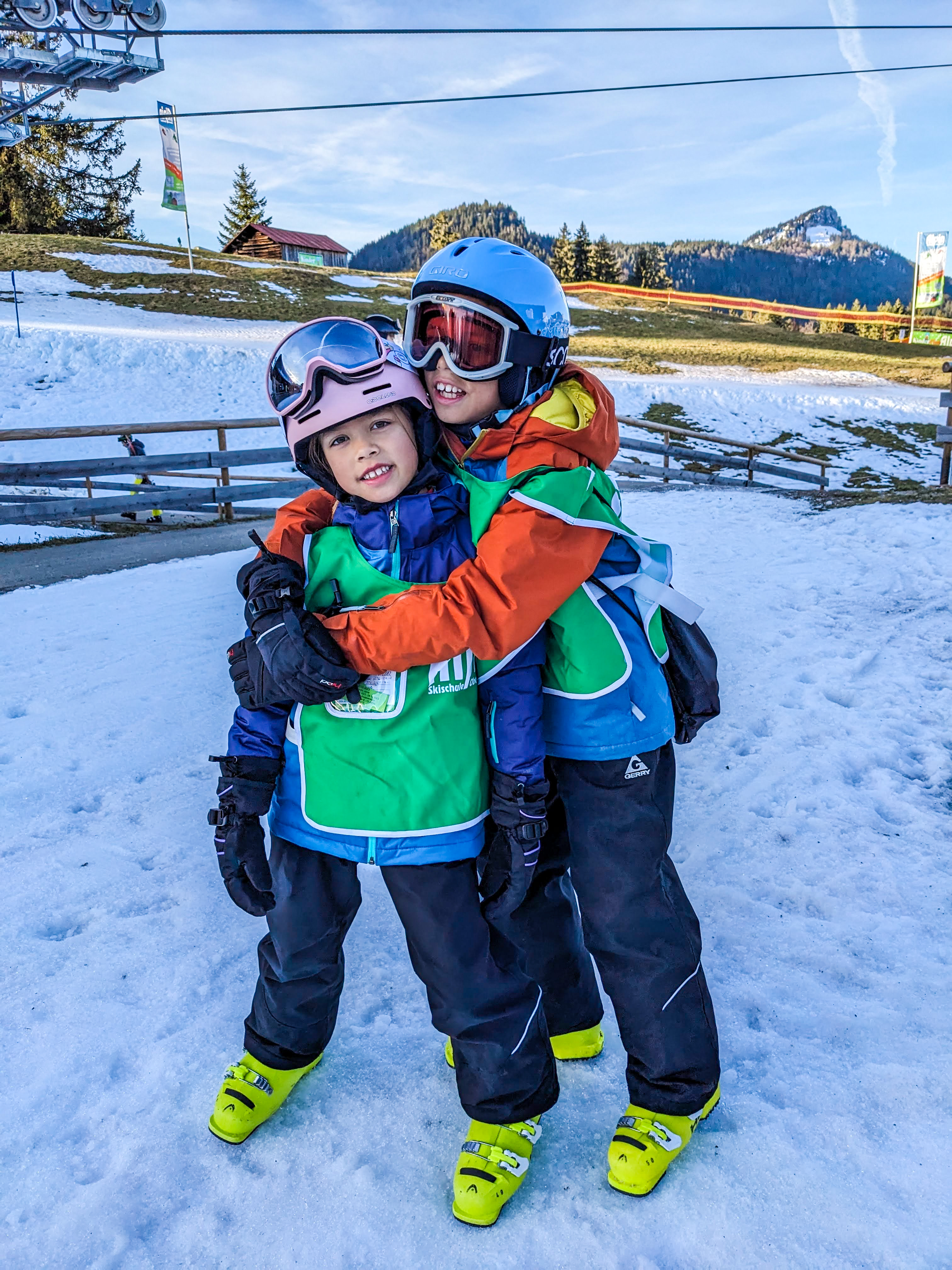The rest of the week we spent skiing. First off, the kids and I have never ever skied before. We initially had the kids in ski school (or as the Germans say, skischule) for three days with Alpin Skischule Oberstdorf. My mother-in-law said that they were the best ski school, but there are others in town to choose from. Alpin did a great job teaching O and S. S was on Söllereck doing blue runs by day three. I ended up signing them up for an additional day of ski school, so O was on Söllereck doing blue runs by the end. The lessons are mostly in German, but they did a great job speaking English that my kids were able to understand and do what was required of them to ski safely and well. Overall, my kids absolutely love skiing and can’t wait to do it again.