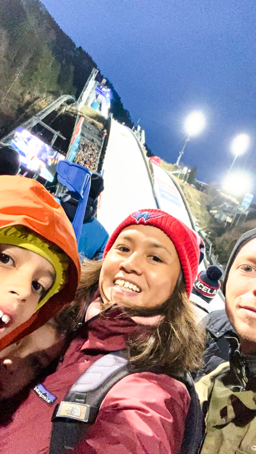 Other than skiing we saw a big international ski jumping event called the Vierschanzentournee. It comprises of four World Cup competitions in four different towns between Germany and Austria over a week. Lucky for us, Oberstdorf happens to be one of those towns that typically hosts. So that was interesting and different. We got to see a few Americans jump. It was also kind of funny seeing how these people were really into ski jumping with their cheering and stuff. It’s also in a legit “stadium” complete with concessions and things. O was actually quite intrigued and into the whole thing. S, not so much.